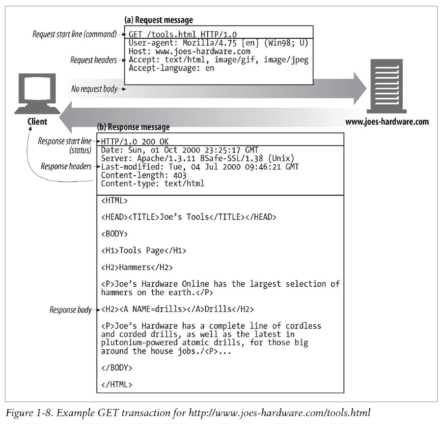 An HTTP transaction consists of a request command(sent from client to server), and a response result(sent from the server back to the client).