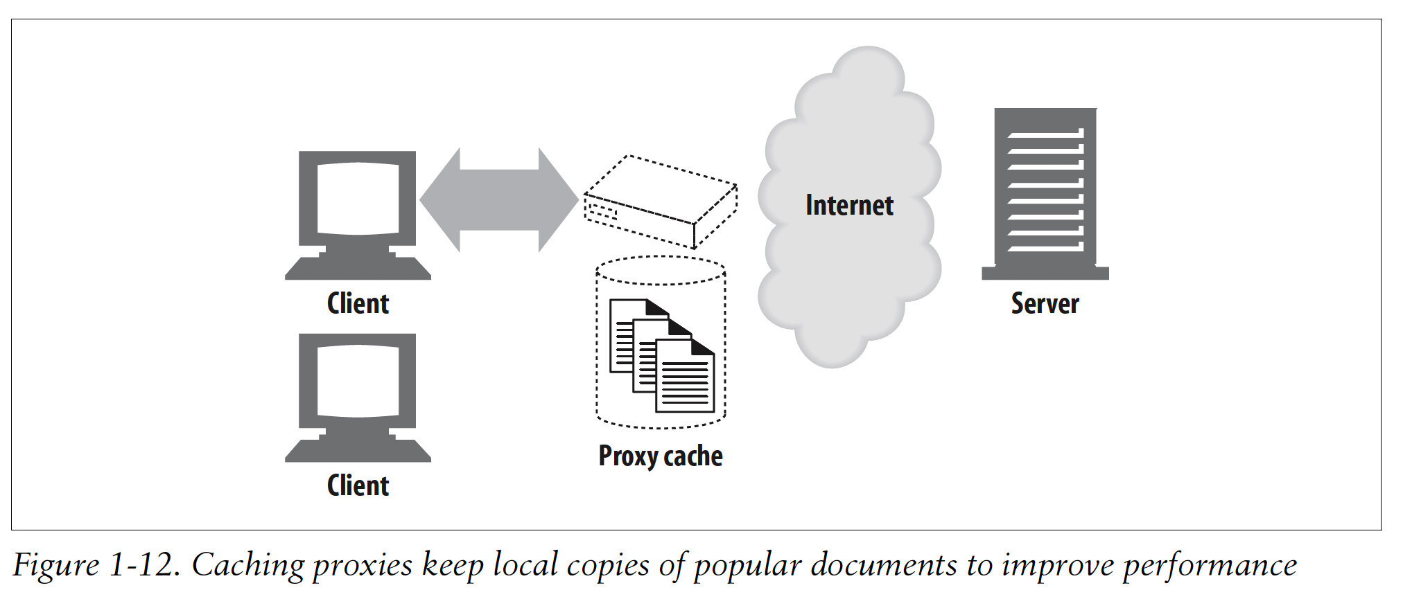 Web cache or caching proxy is a special type of HTTP proxy server that keeps copies of popular documents that pass through the proxy:
