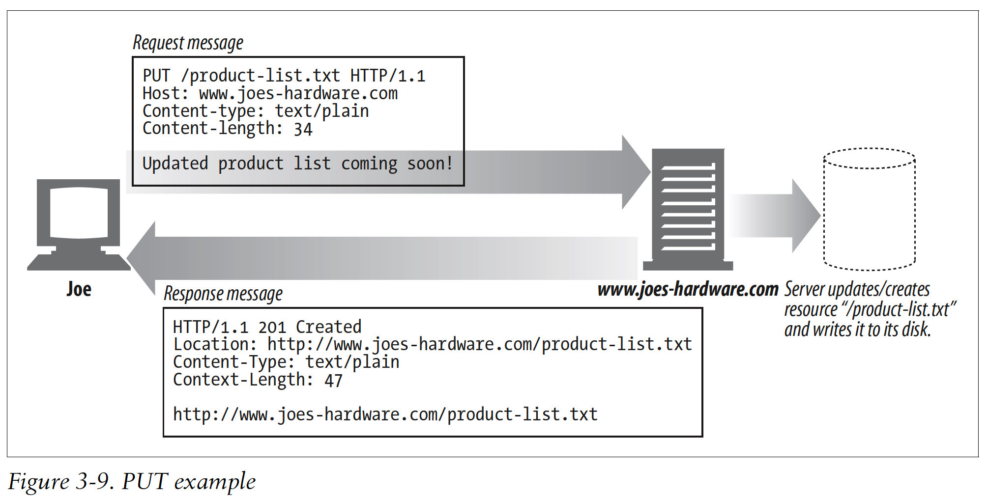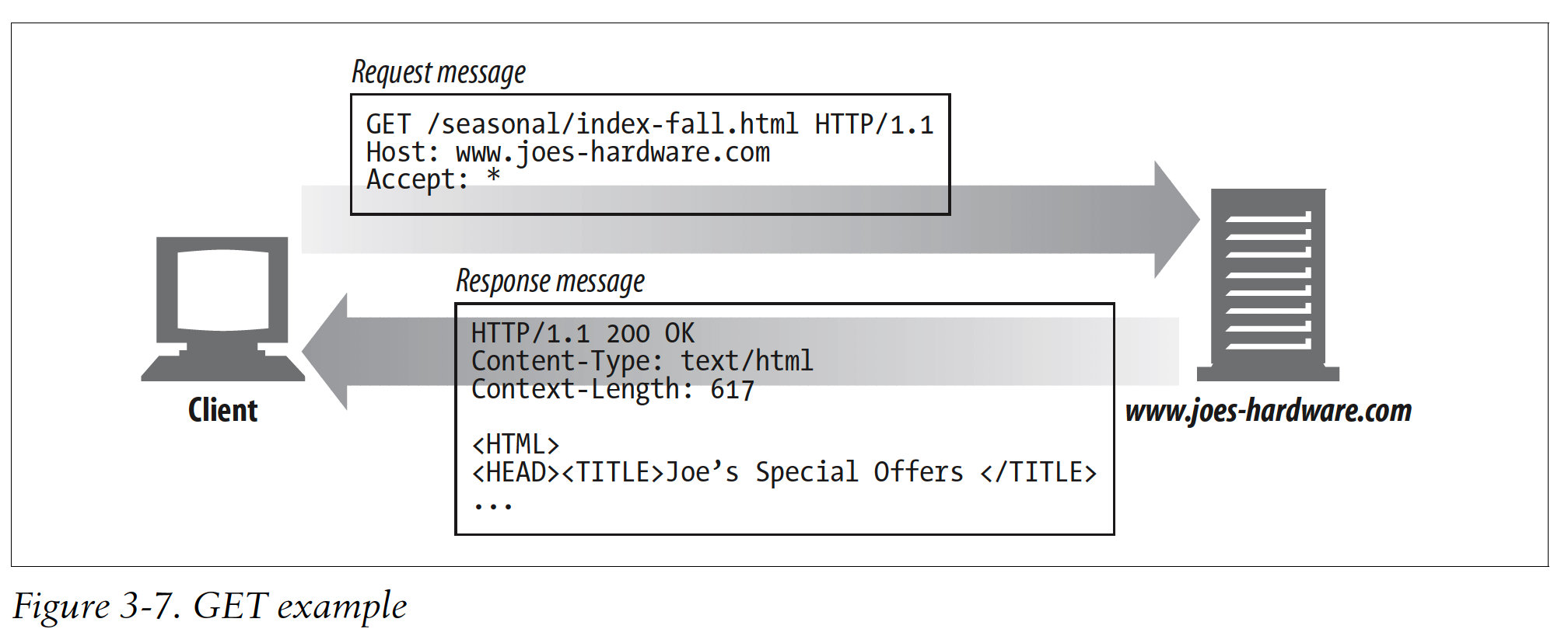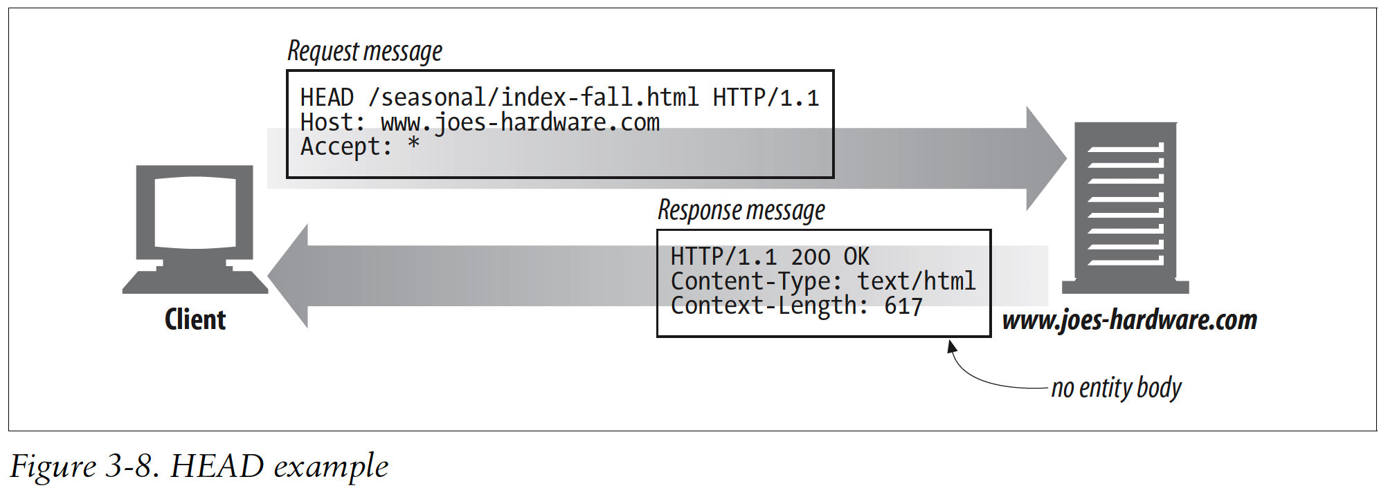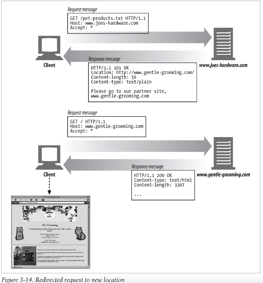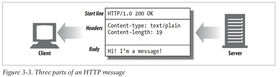 The three parts of HTTP messages(start line, headers, and entity body)