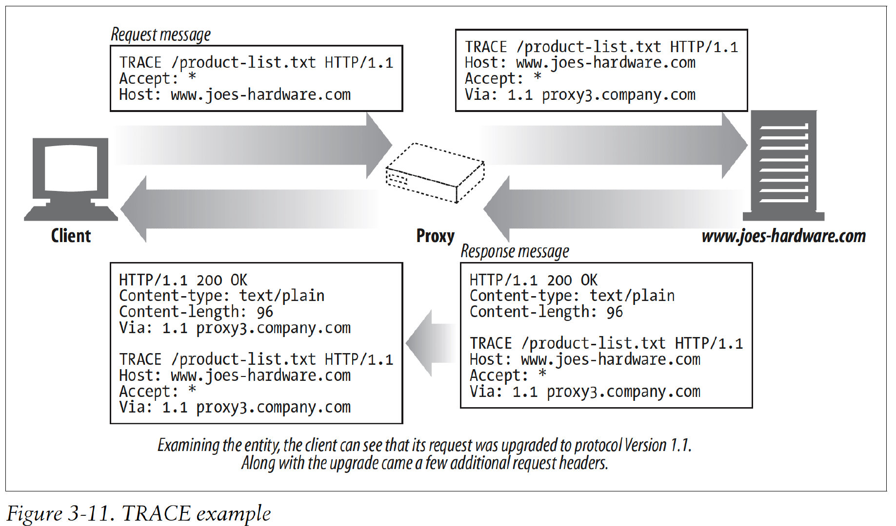 Trace the message through proxy servers to the server.
