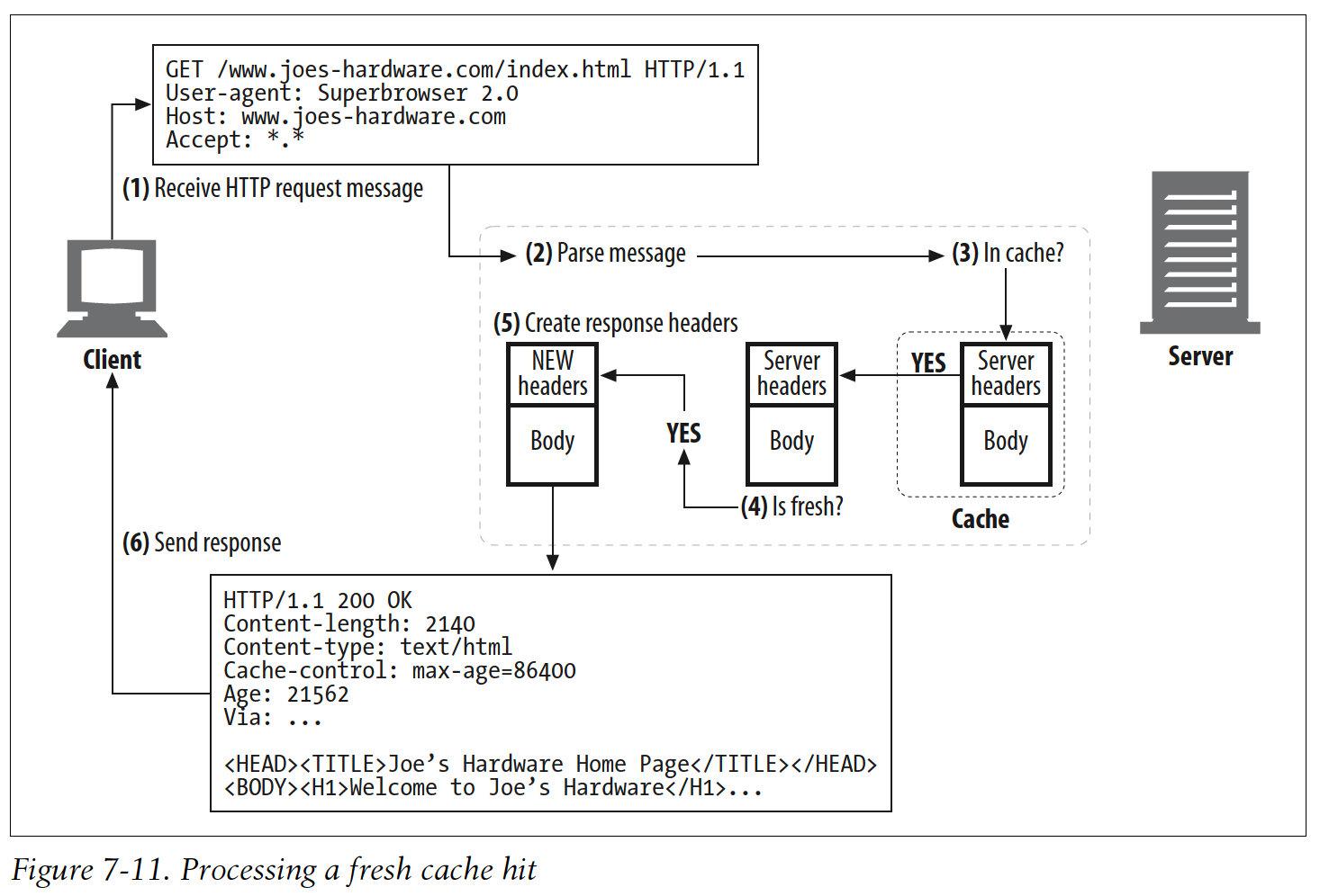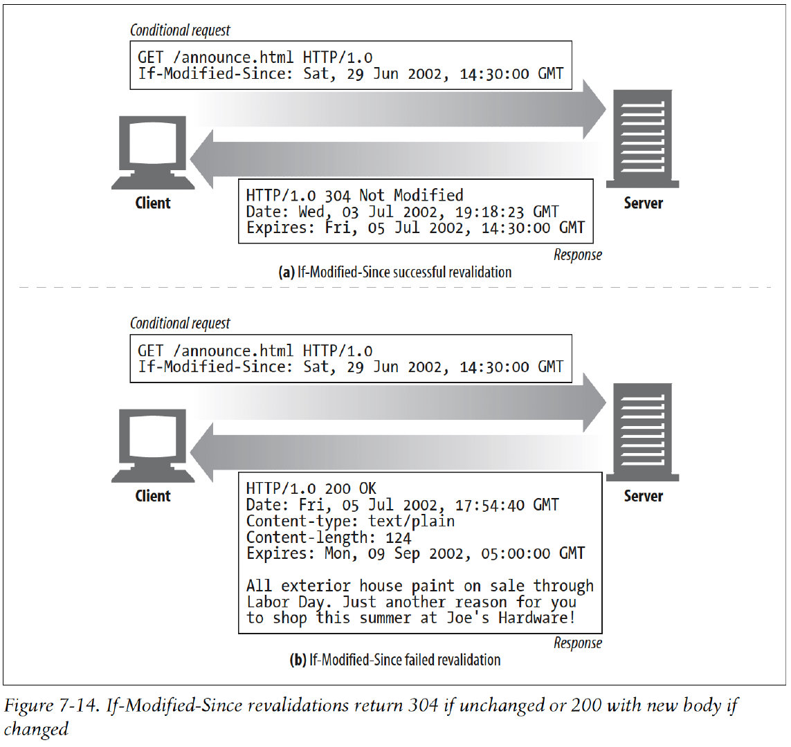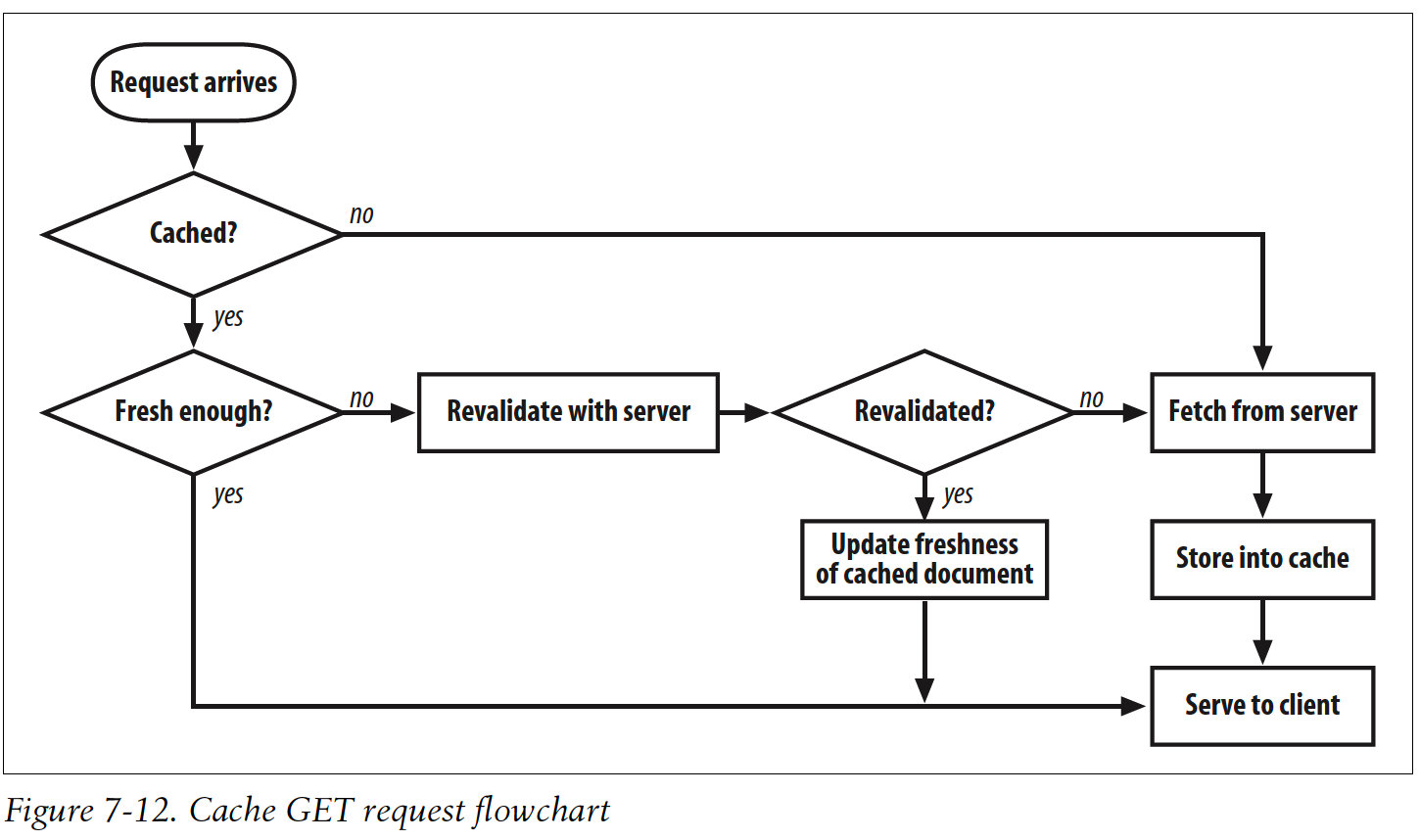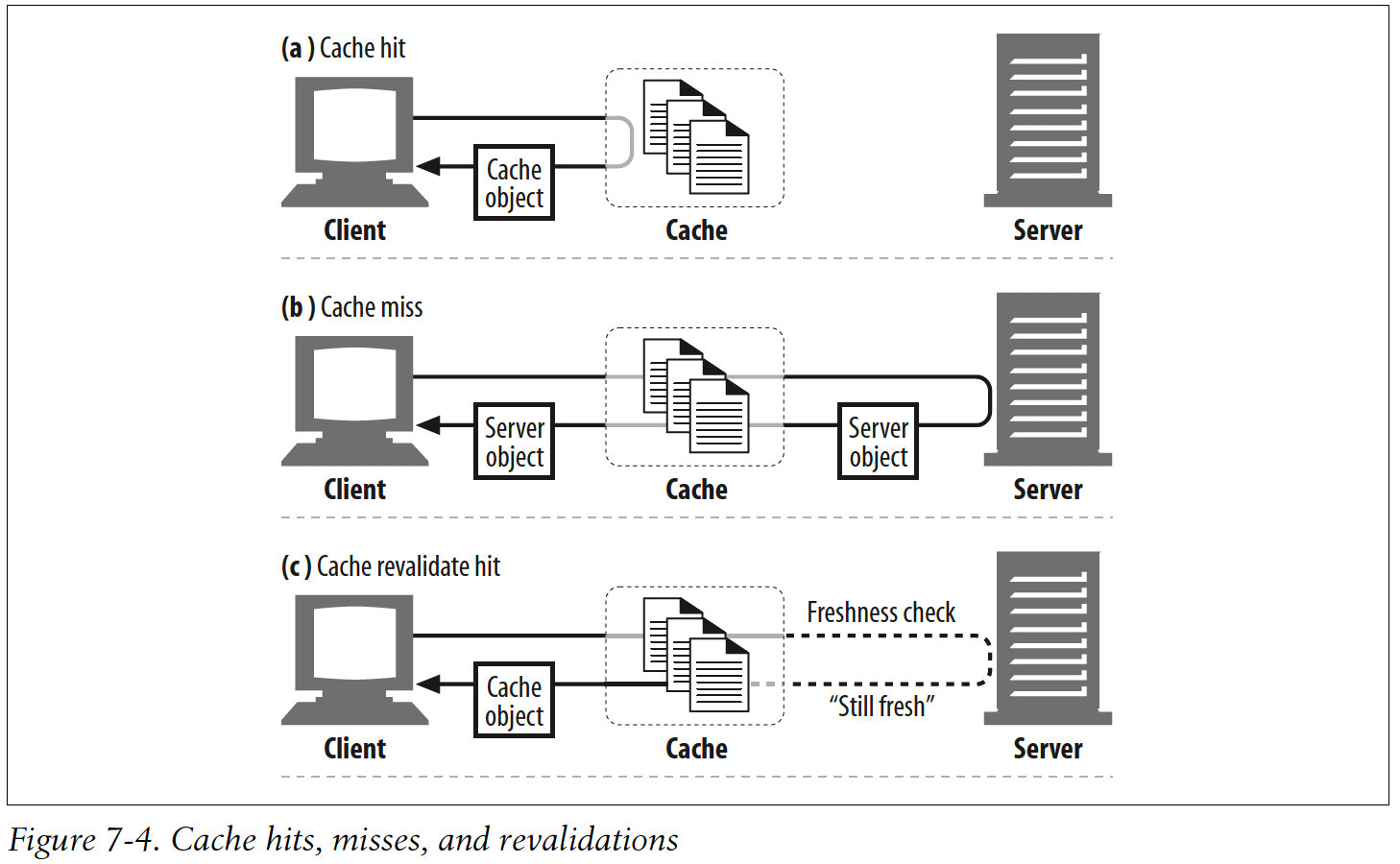 Freshness check: Cache checks if cached copy is fresh enough and, if not, asks server for any updates.