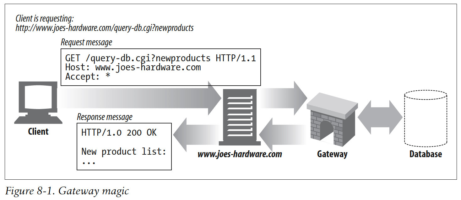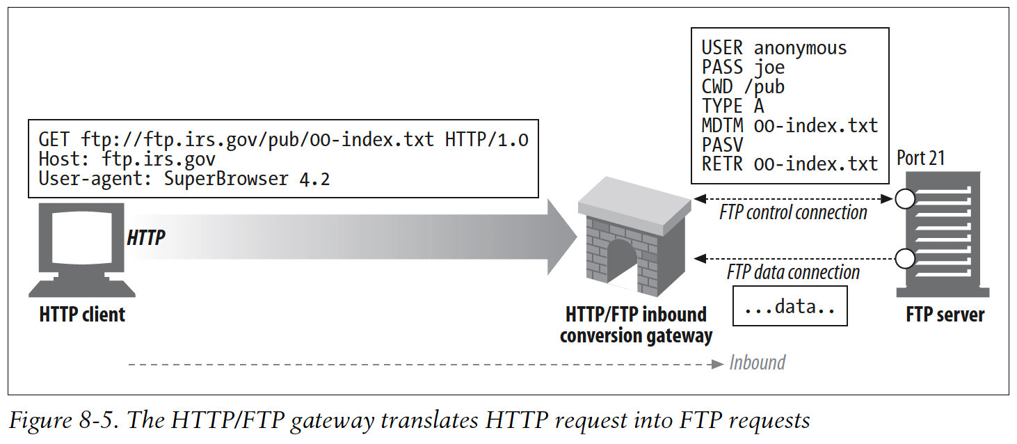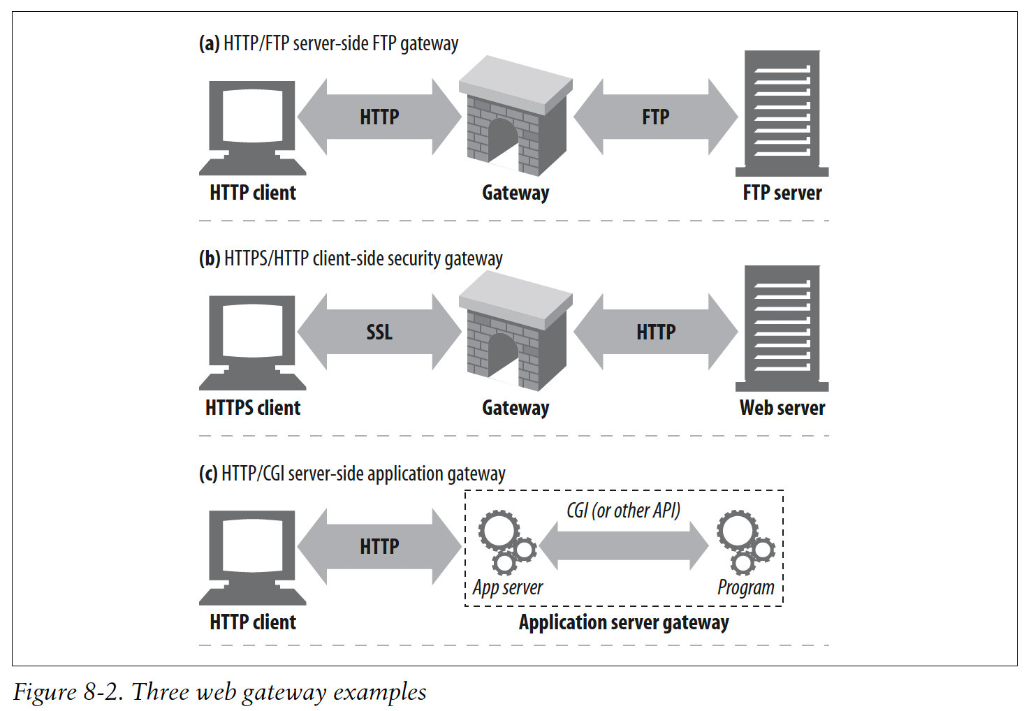 Server-side gateways speak HTTP with clients and a foreign protocol with servers (HTTP/*).