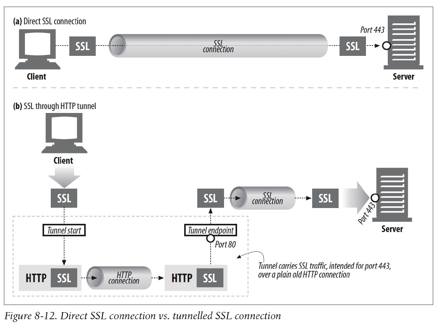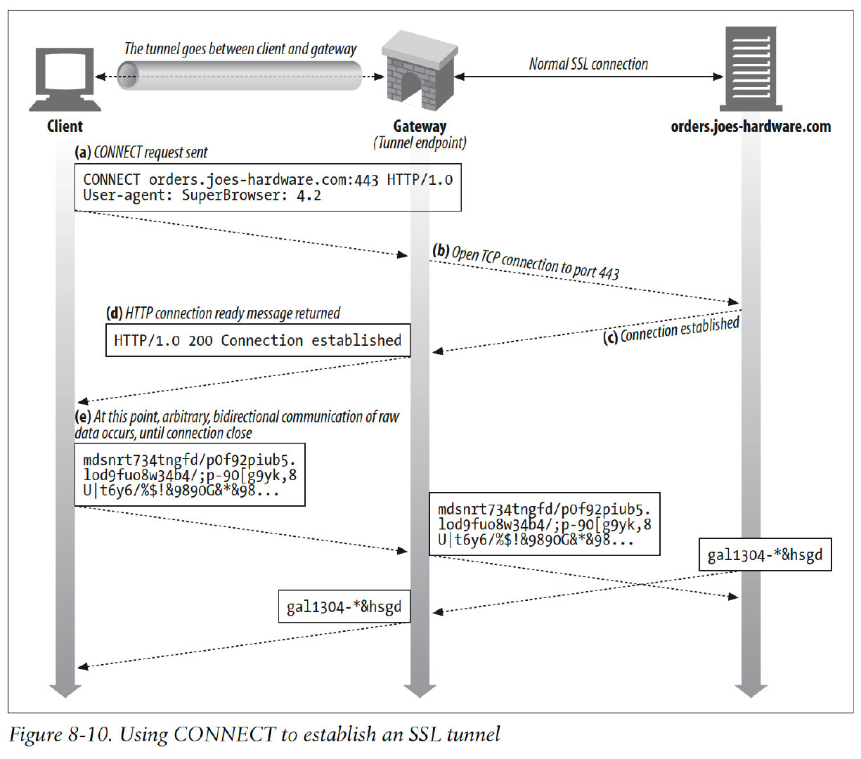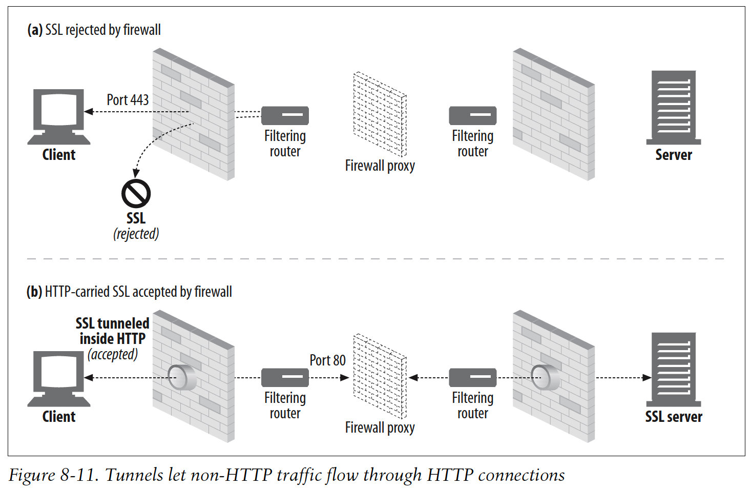 To allow SSL traffic to flow through existing proxy firewalls, a tunneling feature was added to HTTP, in which raw, encrypted data is placed inside HTTP messages and sent through normal HTTP channels.