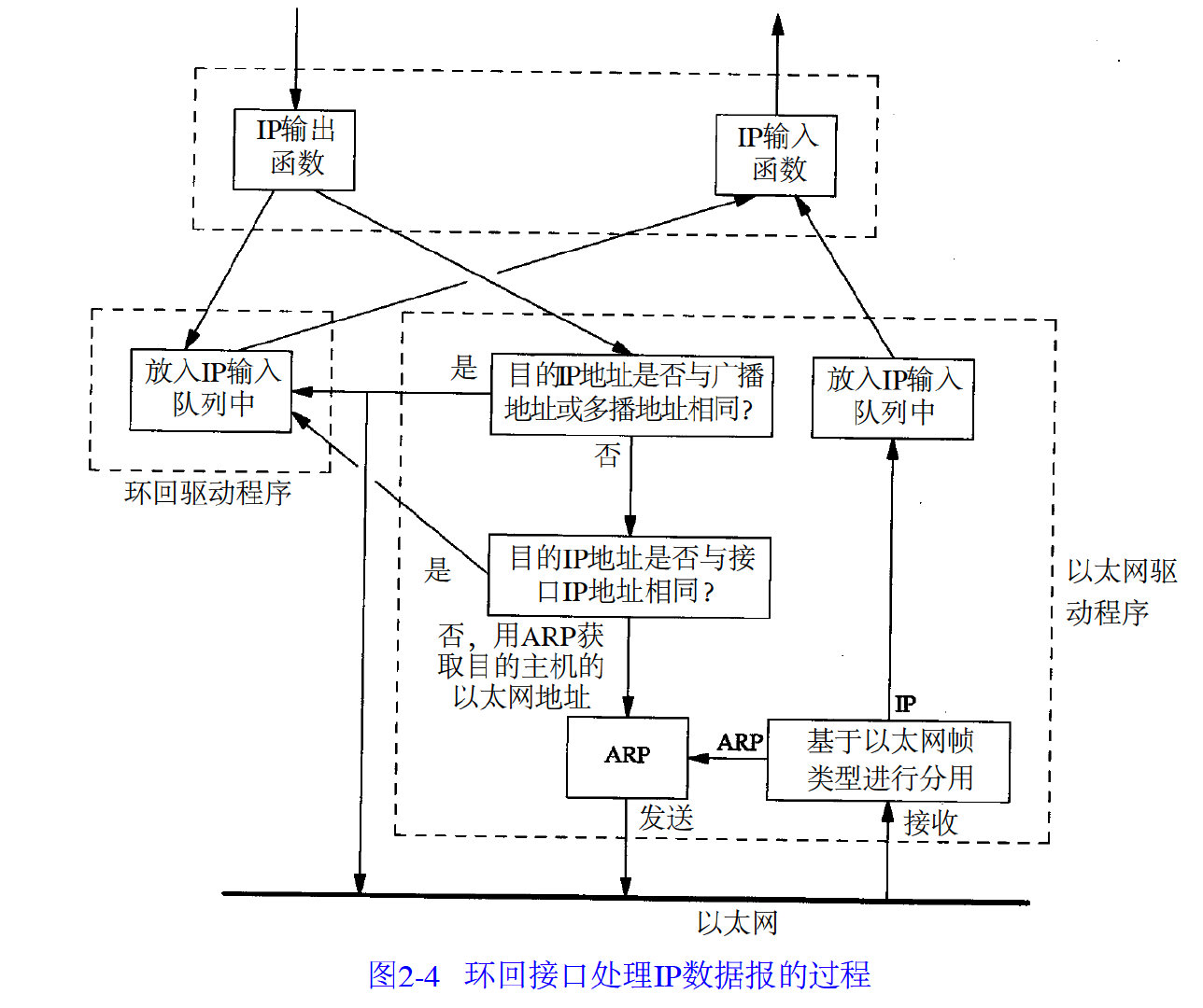 所有发送到本地主机的其中之一一个地址都会被发送到loopback;