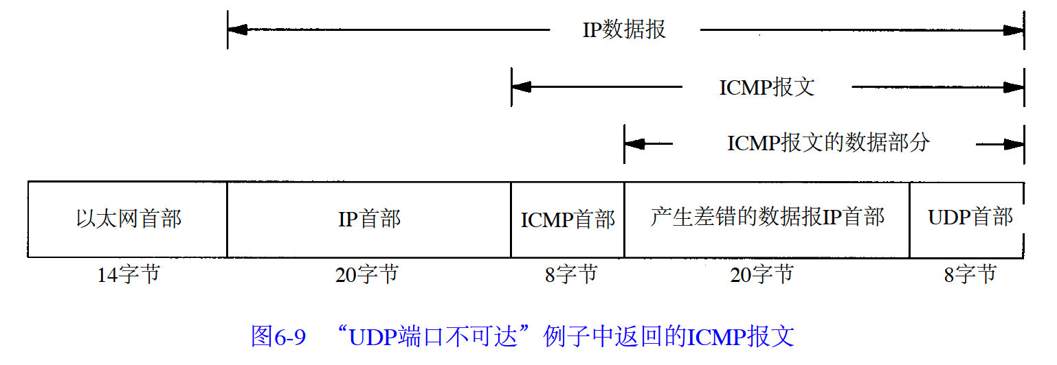 ICMP错误消息必须包含生成这个错误的datagram的IP header,还有IP header后面的8个字节。比如:
